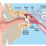 If the eustachian tube is partly or completely blocked because of scarring, a tumor, an infection, the common cold, or an allergy, air cannot move in and out of the middle ear. The resulting pressure difference may bruise the eardrum or even cause it to rupture and bleed. If the pressure difference is very great, the oval window (the entrance into the inner ear from the middle ear) may rupture, allowing fluid from the inner ear to leak into the middle ear. Hearing loss or vertigo occurring during descent in a deep-sea dive suggests that such leakage is taking place. The same symptoms occurring during ascent suggest that an air bubble has formed in the inner ear.